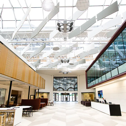 Suspended vertically from the ceiling, acoustic baffles are a highly effective acoustic solution that can bring an aesthetic benefit to the space too. With limitless finishes, colours and designs available, Muffle is proud to offer one of the largest ranges of acoustic baffles available anywhere.