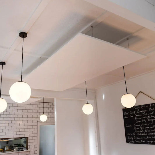 Chez Muffle, nous avons pour objectif de créer des espaces accueillants, tant sur le plan acoustique qu'esthétique, ce qui signifie que nous sommes ravis de pouvoir proposer des solutions acoustiques personnalisées. Que vous recherchiez une couleur ou une forme particulière, ou que vous souhaitiez intégrer un éclairage dans vos radeaux acoustiques, nous pouvons vous aider.