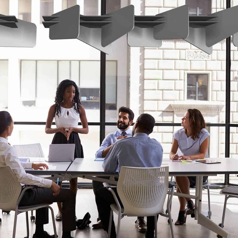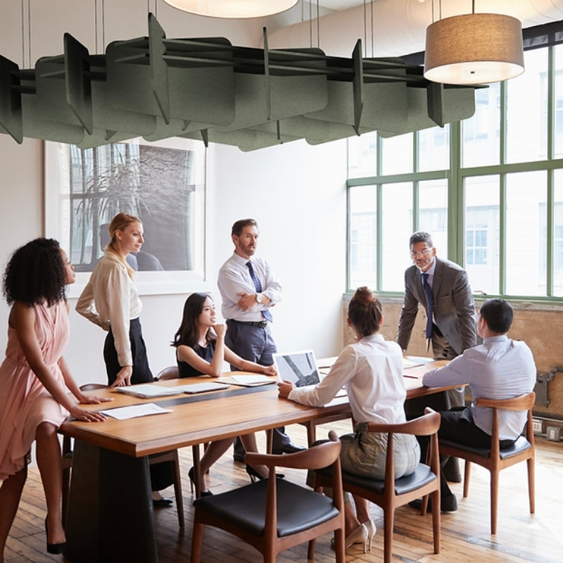 Crop est la solution acoustique idéale qui doit être incluse dans n'importe quel environnement, qu'il s'agisse d'un bureau, d'une salle d'attente, d'une salle de réunion ou autre, la fonction de Crop sera toujours d'éliminer tout son indésirable. Le matériau utilisé, Miixfelt, est utilisé pour créer des produits tels que Crop car il s'agit d'un absorbeur de son efficace pour tous les espaces tout en étant respectueux de l'environnement.