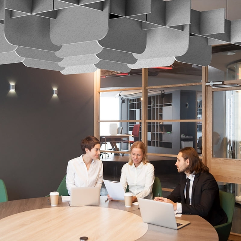 Le Tartan est parfait pour les espaces ouverts. Il offre une atmosphère chaleureuse et silencieuse, tandis que son look classique inspiré du tartan ajoute une touche intemporelle à n'importe quel environnement. Il s'agit d'un module de plafond suspendu élégant conçu pour contrôler le son tout en améliorant l'attrait visuel de votre espace.