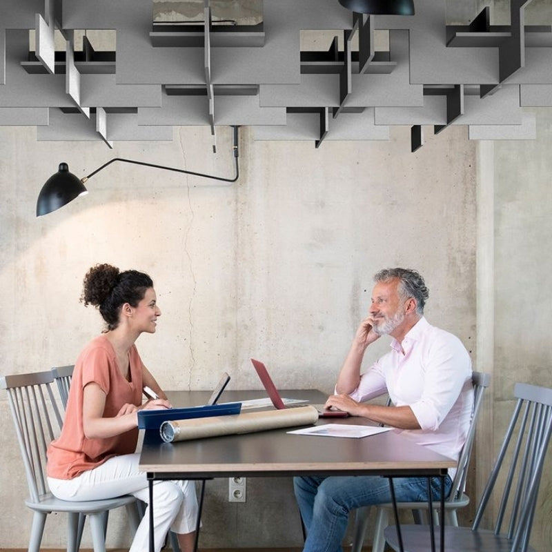 Selon vos besoins, Weave peut être suspendu seul ou en plusieurs exemplaires, pour tirer le meilleur parti de l'espace dont vous disposez. Cette solution acoustique