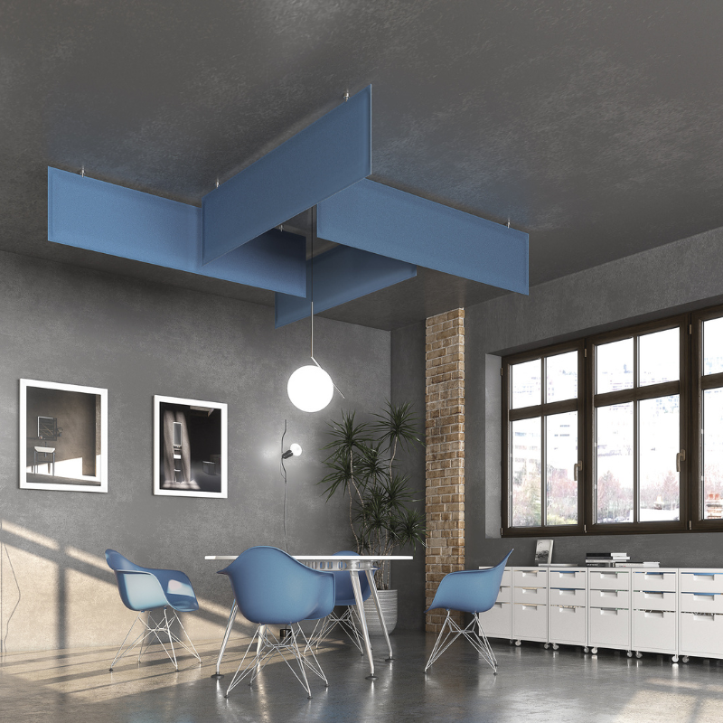 Each panel is crafted utilizing Snowsound technology, featuring a polyester internal padding, covered in Trevira CS® fabric, allowing for a durable product capable of absorbing 94% of human speech frequencies.