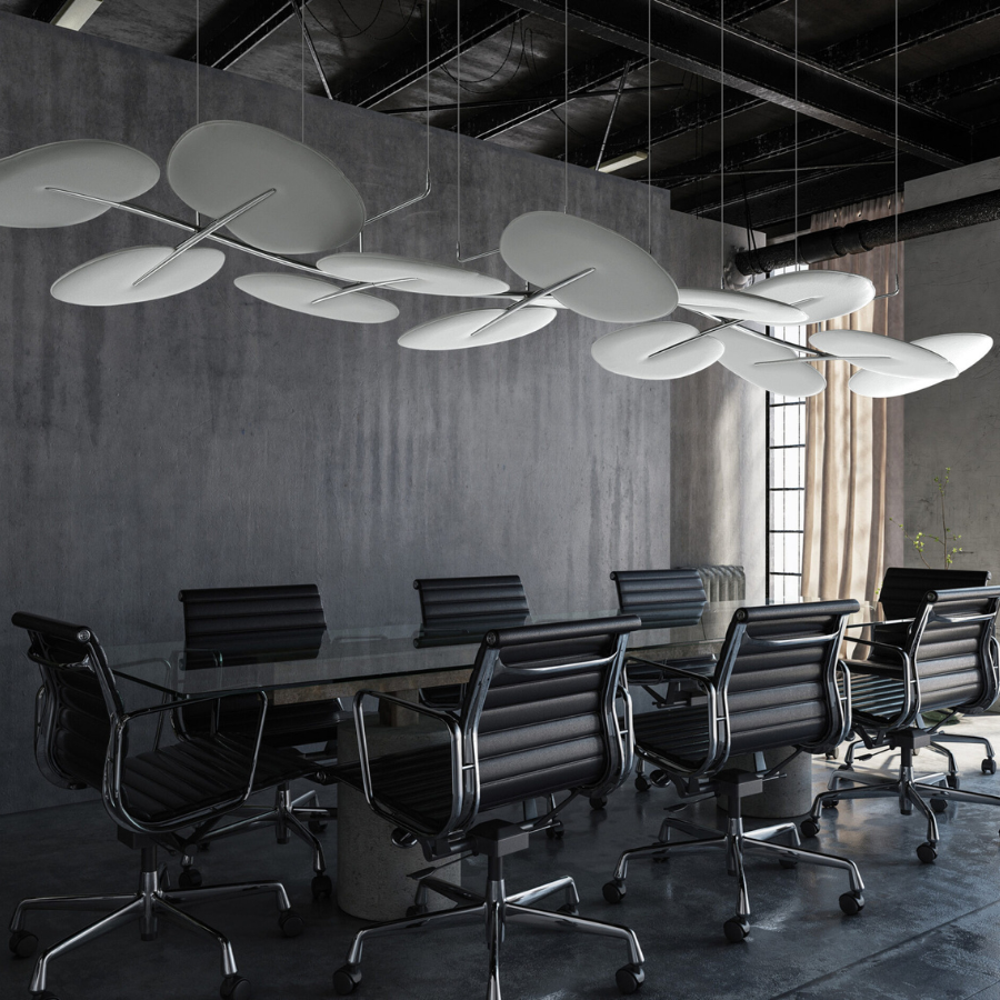 Like its Wall Mount Arrangement counterpart, the Snowsound Botanica features a customizable, modular steel frame, complete with adjustable cables for ceiling suspension. The frames range from 4-panel arrangements up to 14-panel arrangements, designed to fit a variety of spaces.