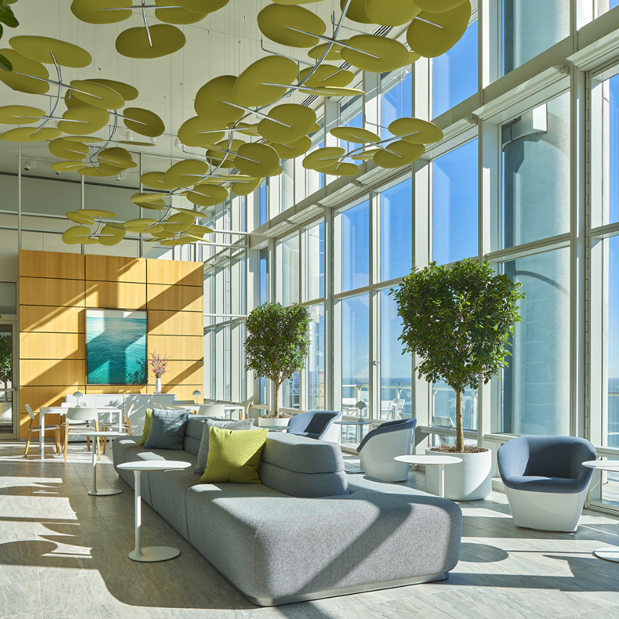 Each single-stem leaf is mountable upon a curved, chrome-plated steel frame, capable of hosting as many as 14 individual leaf panels. Just one of these panels can absorb 94% of human speech frequencies, meaning an entire branch becomes a premium option for acoustic solutions in any interior.