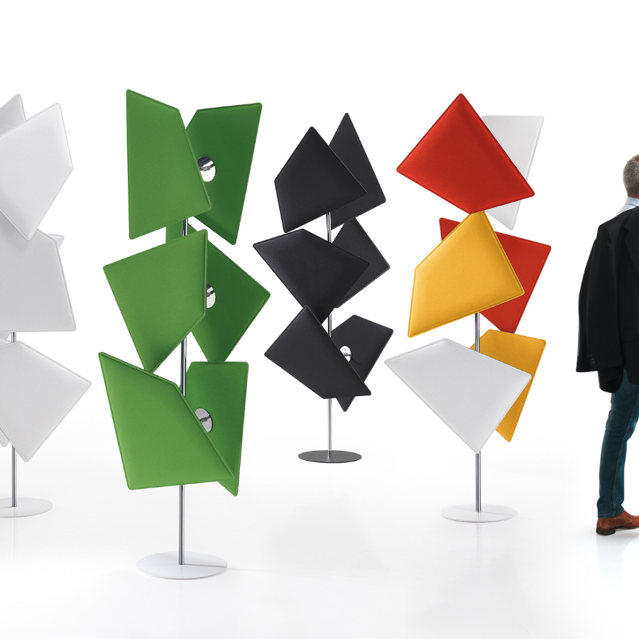 Le Totem de Mitesco est un élément vertical acoustique esthétiquement plaisant de la famille Mitesco. Le Totem peut être autoportant et peut également être repositionné là où il est nécessaire, ajoutant un intérêt visuel, un soulagement acoustique et un peu d'intimité à tout paysage intérieur. Le panneau Mitesco utilisé sur le Totem possède les mêmes propriétés acoustiques des deux côtés. Le support est en fonte et disponible en blanc ou en argent. Conception brevetée par les spécialistes italiens de l'acoustique Caimi Brevetti Panneau ultra fin absorbant les sons, d'une épaisseur de 35 mm seulement. Technologie Snowsound® Noyau intérieur en polyester, tissu extérieur en polyester (un seul matériau). 100% recyclable. Design de Michele De Lucchi Exempt de substances nocives (certifié conforme à la norme Oeko-Tex 100) Revêtement en polyester en tissu Trevira CS® Panneaux double face à bords durs, légers, faciles à positionner et à installer. Non toxique.