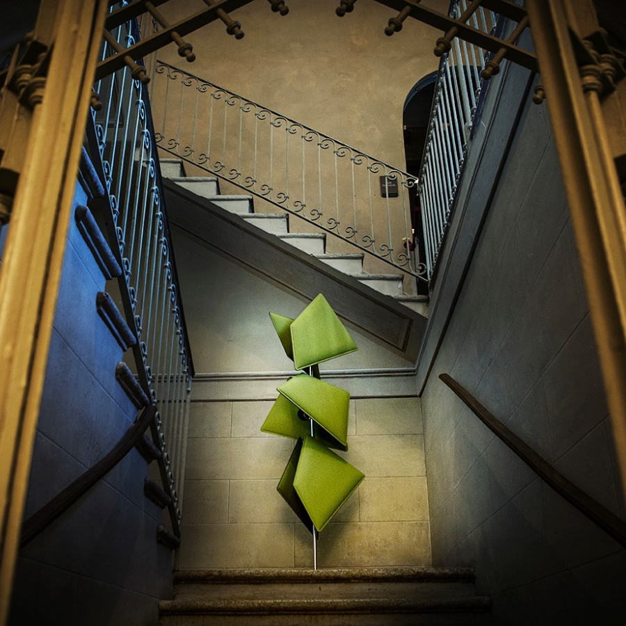 Élégant, décoratif et pratique, le totem peut accueillir jusqu'à 6 panneaux à rabat (quantité recommandée) pour un produit attrayant, efficace et harmonisant une approche artistique de l'acoustique.